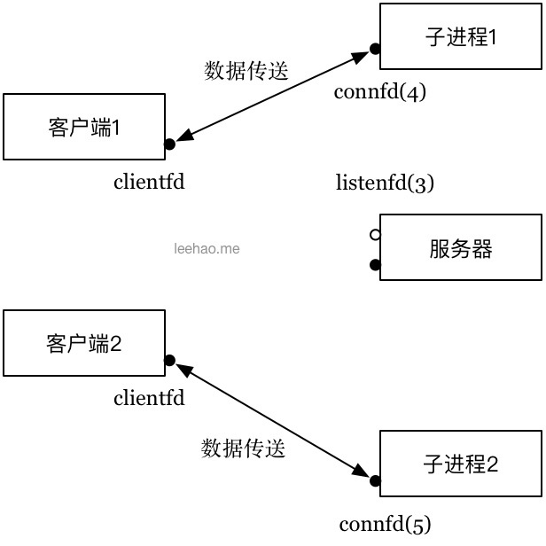 图4:服务器派生另一个子进程为新的客户端服务