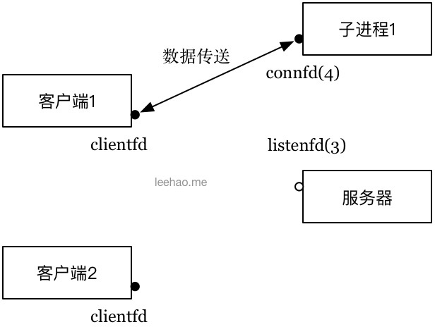 图2:第二步:服务器派生一个子进程为这个客户端服务